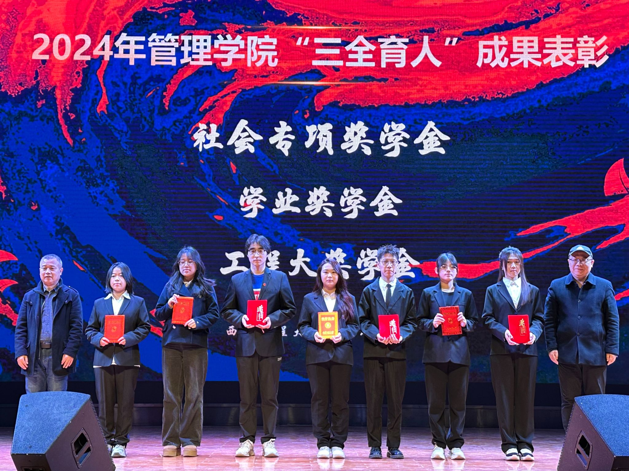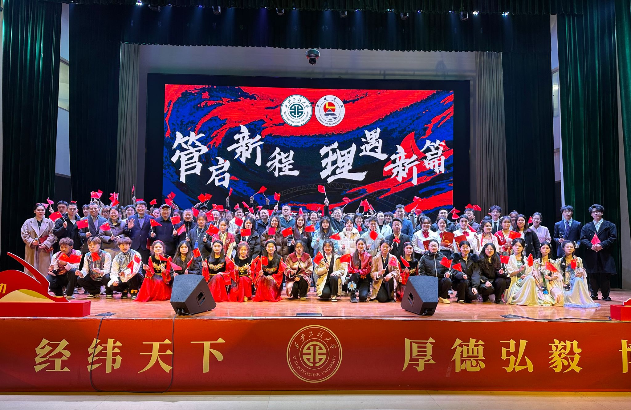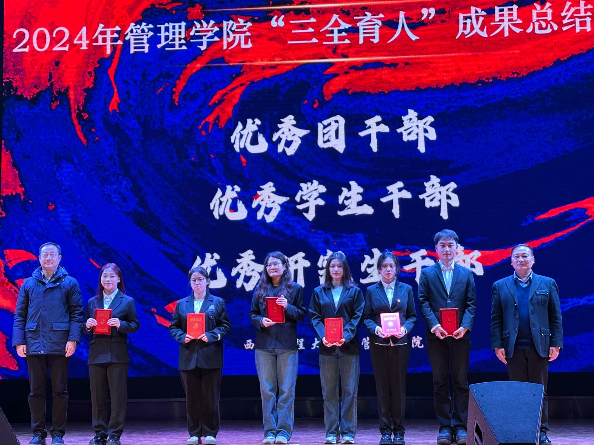 12月16日,taptap点点188在临潼校区大学生活动中心举办2024年“三全育人”成果表彰大会暨“管启新程 理遇新篇”迎新晚会,校党委委员、党委统战部部长张冬梅、党委学工部部长王志、党委研究生工作部专职副部长赖斌、校团委书记刘俊富、招生就业工作处副处长付刚,以及学院党委书记王爱华、党委副书记代锴、院长助理陈恒,学院“三全育人”导师团代表、全体辅导员与2024级本硕新生600余人参加活动。本次活动还特别邀请到学院“爱国主义教育基地”共建单位71897部队沙家浜营营长臧青松、我院2004级校友刘全红、2007级校友景志阳作为嘉宾共同参会。