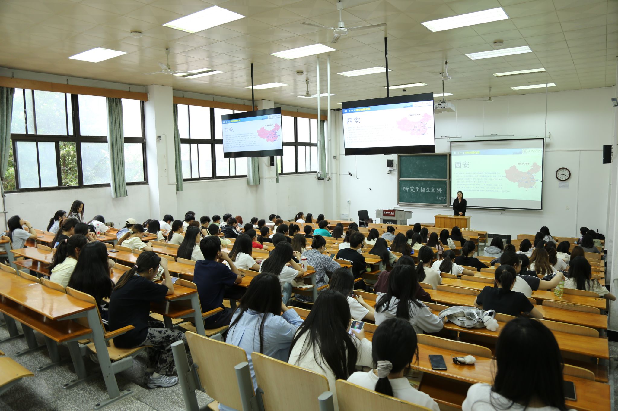 在专题宣讲会上,张余丹、黄鹏飞两位老师从2026年研究生招生专业及方向、人才培养平台、师资与科研力量、毕业生风采及就业发展等方面,全面介绍了学院研究生教育的基本情况与优势特色,并就考生关心的问题给予充分的解答。