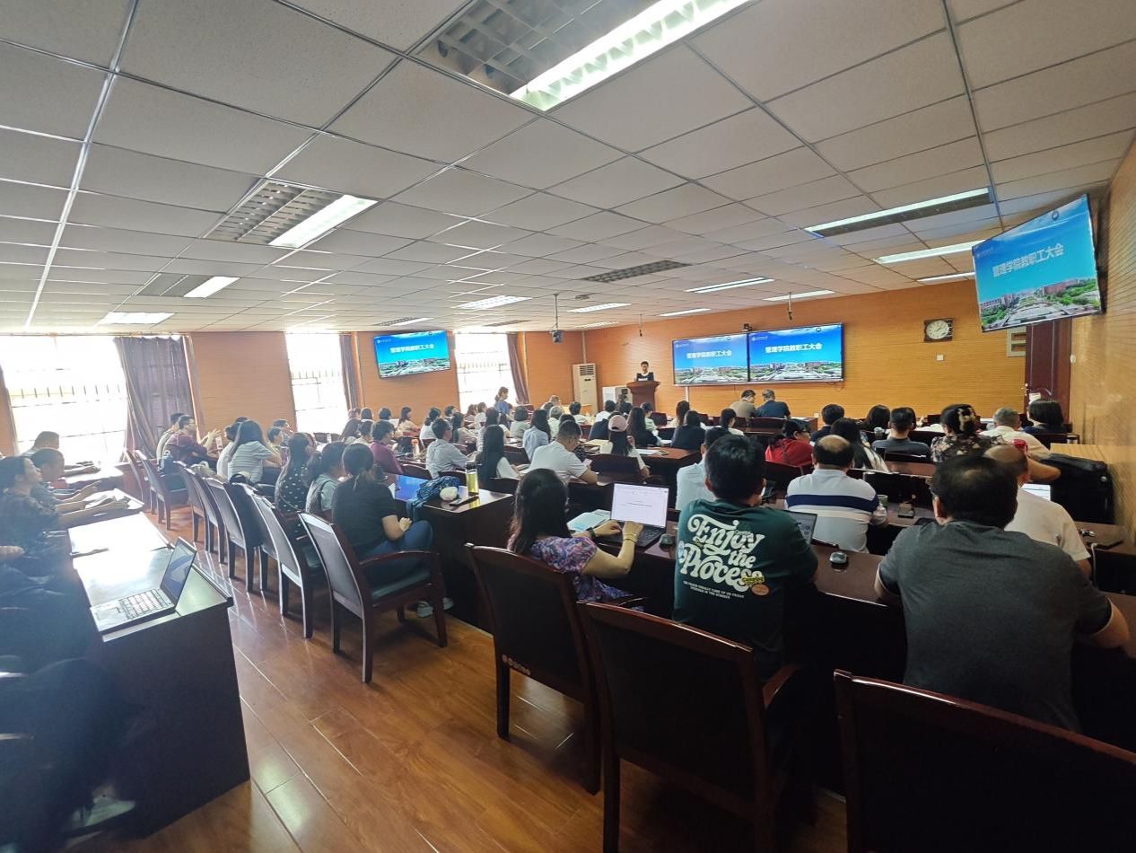2025 年 6 月 3 日下午,taptap点点188在金花校区7-610会议室召开教职工大会,安排落实近期重点工作。taptap点点188领导班子成员及全体教职工参加会议,会议由学院党委书记王爱华主持。