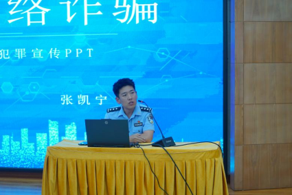 张凯宁结合实际案例,深入剖析了大家易上当受骗的原因,详细介绍了常见的诈骗类型:游戏低价代充或账号出售骗局、刷单返利骗局、“线上诈骗结合线下取现”的虚拟投资理财骗局、冒充公安机关人员骗局等,张队长提醒大家遇到此类情况务必打电话确认对方身份或直接报警处理,并且强调了买卖电话卡、银行卡的风险,希望大家遇事多思考、多询问,切勿因一时糊涂触犯法律。张队长在宣讲中以具体案例深入剖析诈骗手法,揭示诈骗陷阱,传授防范技巧,进一步提高了广大师生的警惕性和应对能力,讲座现场反响良好。