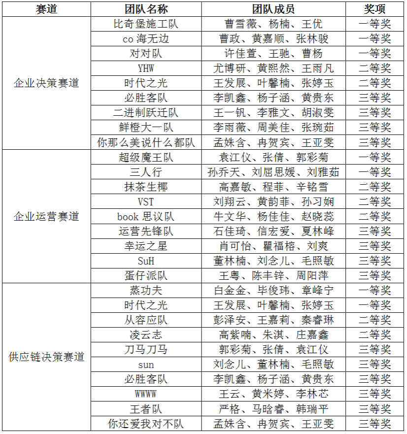 在激烈的比赛中,我院参赛队伍凭借扎实的专业知识、创新的策略运用和稳定的临场发挥,在全部三个赛道中均表现出色,获奖名单如下: