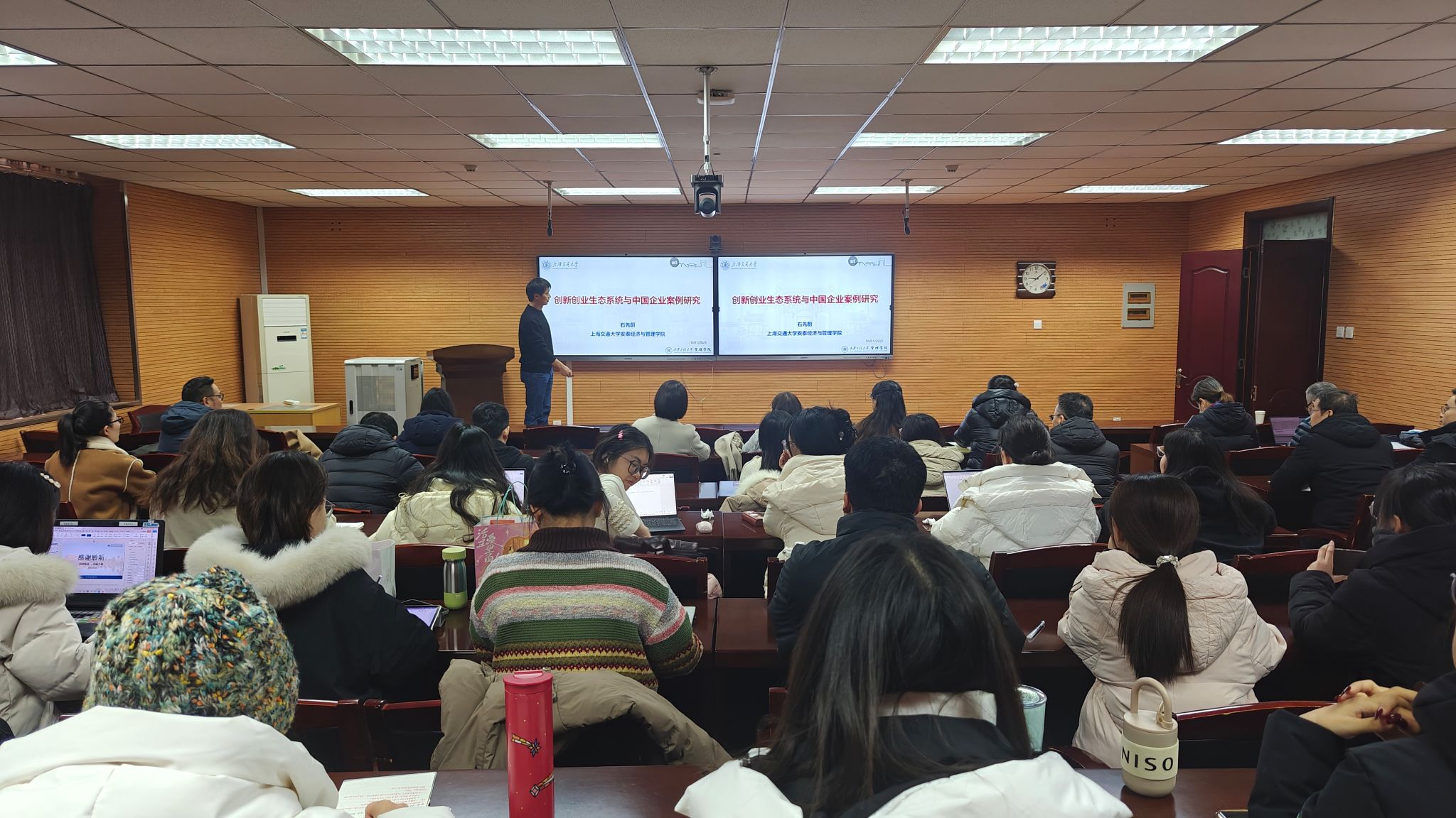 1月18日上午,taptap点点188邀请上海交通大学安泰经济与taptap点点188石先蔚副教授来校进行学术交流,石先蔚副教授作了“创新创业生态系统与中国企业案例研究”的学术报告。报告会由taptap点点188副院长王渊主持,学院学术骨干、青年教师及部分研究生参加了报告会。
