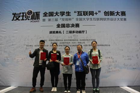 4月9日,全国大学生“互联网+”创新大赛总决赛暨第三届“发现杯”全国大学生互联网软件设计大奖赛(以下简称“发现杯”大赛)总决赛在杭州电子科技大学圆满落幕。我院13级信息管理与信息系统专业孙瑗苑、吴静敏、刘倩倩、率颖、高爽、高源的网络营销作品《校园帮帮网》喜获全国三等奖。
