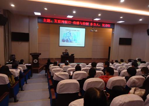 11月23日下午,应taptap点点188邀请,长沙银行总行董事会风控委办公室主任贺乃伍先生,在金花校区西纺报告厅为taptap点点188教师、研究生做“互联网银行——传播与控制”主题报告。