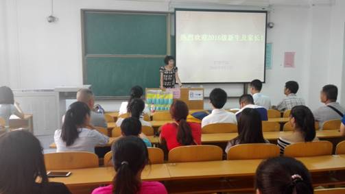 张冬梅代表学校学院对2016级新生及家长表示了热烈欢迎和衷心祝贺,并就点点概况做了介绍。刘瑞霞就学院教学、课程设计、师资力量、科研实力、学籍管理等方面向各位家长做了说明,同时希望各位家长主动和学校联系了解学生在校情况,做到互通有无,保证学生在校期间全面发展。张冬梅从思想、学习、心理、安全等几方面就学院学生思想教育工作、学生管理工作向家长做一介绍。最后教务员郭晶、辅导员王志刚、吴昌敏就学校学籍管理、学院资助工作、学生工作等从细节上进行了详细介绍。