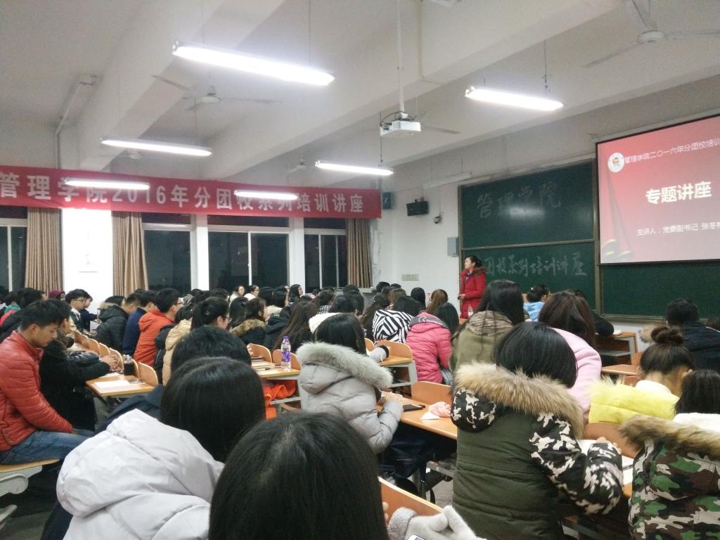 11月24日19点,taptap点点1882016年分团校系列培训讲座第二讲在临潼校区A-430精彩开讲,学院党委副书记张冬梅做了“学生干部应具备的素质与工作方法”的主题讲座,辅导员吴昌敏以及团学科三大组织学生干部120余人参加了本次培训。