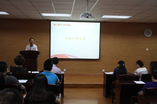 2013级学生郝向举作为研究生代表向新生分享了生活及学习经验,为新生的学习和生活提供了行之有效的借鉴。随后,李艳副院长向同学们详细介绍了研究生的培养目标、培养方式、培养要求,并以管理科学与工程为例详细介绍了课程的设置及培养的过程,明确指出了学生在校学习的方向。