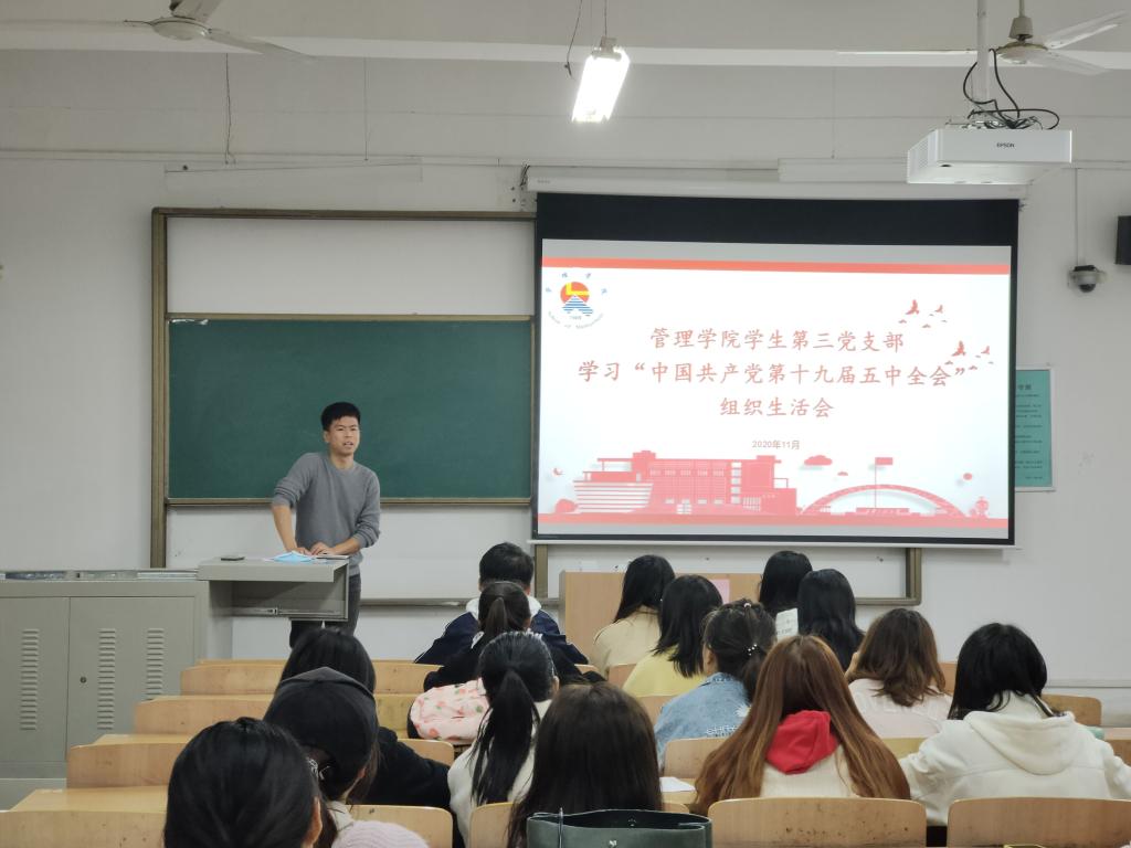 11月16日,taptap点点188学生第三党支部在临潼校区召开了学习党的十九届五中全会精神组织生活会。党支部全体党员、预备党员和积极分子出席活动,会议由学生第三党支部书记李根主持并组织学习。
