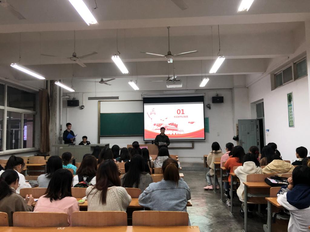 会上,李根对习近平总书记在大会的讲话精神进行深刻解读,结合新时代中国特色社会主义发展道路,以反腐、脱贫等主题展示了共产党员的责任与担当,再次为同学们明确了党员目标——全心全意为人民服务。