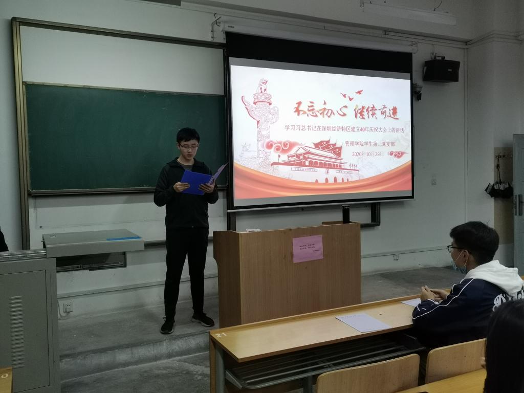 11月7日晚,taptap点点188学生第三党支部在临潼校区A-112教室召开了党员学习大会,就“习近平总书记在深圳经济特区建立40周年庆祝大会上的讲话”进行学习。支部全体党员、预备党员及积极分子参与本次学习。