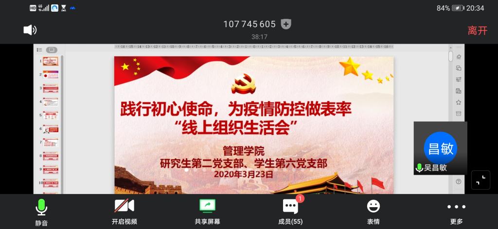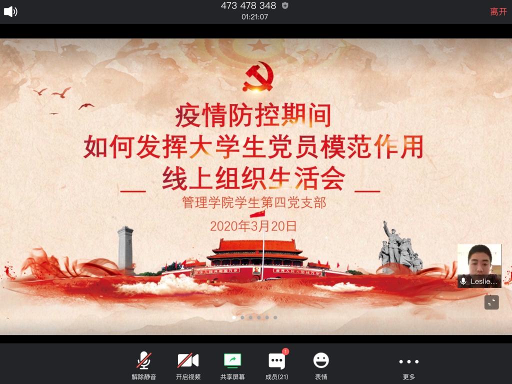 各支部围绕“疫情防控作表率、践行初心担使命”;“让党旗在疫情中闪耀”;疫情期间政治理论学习研讨和教学科研工作交流;“凝心聚力,线上育人,汇集众志,共克时艰”;如何在疫情防控中发挥党员的先锋模范作用、带头担当作为履职尽责等主题开展组织生活。重点学习习近平总书记关于疫情防控的重要指示批示精神以及学校党委的工作部署,共同学习疫情防控政策和防疫知识,组织观看习近平总书记湖北考察新冠肺炎疫情防控工作的视频讲话、“我是党员我先上”等防疫先进典型事迹视频。教师党员结合自己线上教学的情况,讨论如何更好地进行网课,同时要做好毕业班级毕业论文辅导和科研项目申报工作;参与社区防疫工作的部分学生党员分享了在疫情期间参与村支部疫情防控执勤,作“抗疫”志愿者的心得体会;学生干部党员分享了在家学习情况,以及作为班干部主动承担起督促同学健康情况“日报告”打卡工作,协助老师整理学院毕业生就业信息表,做到学习工作不停步,同力协契、共克时艰,始终保持积极有序的状态。