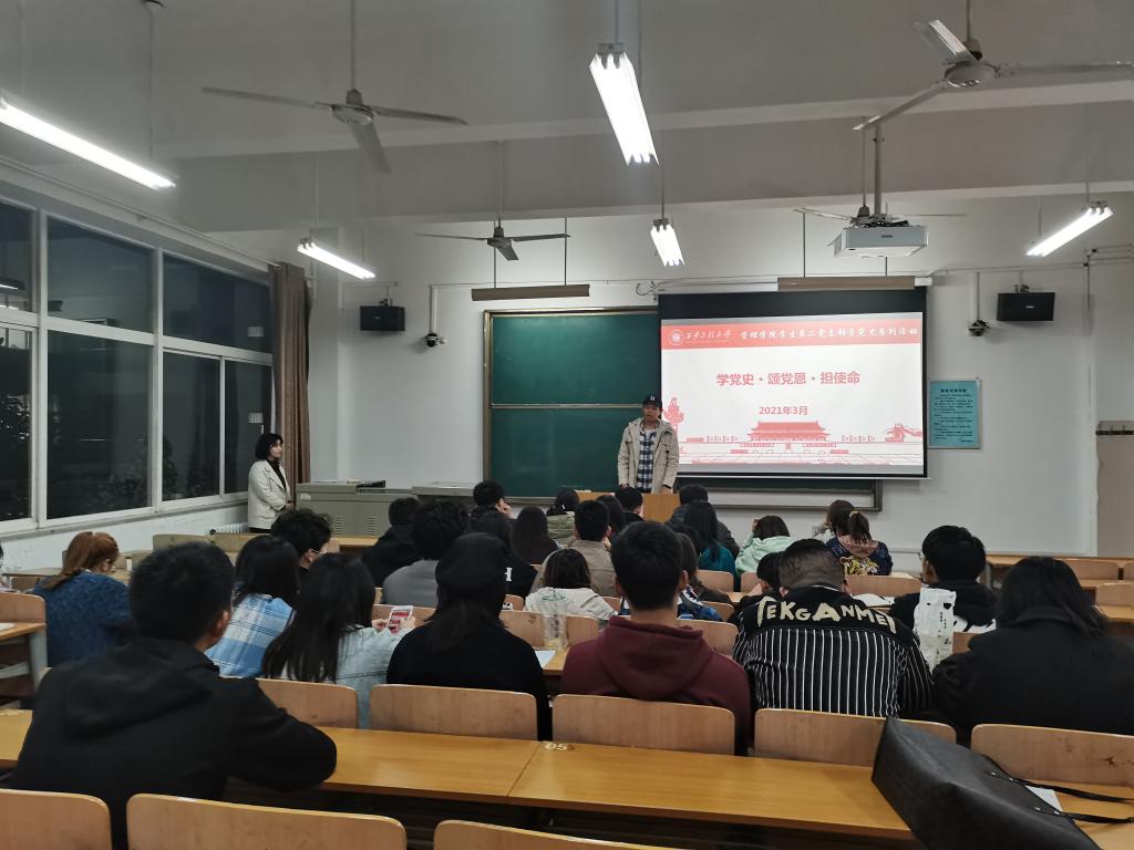 2021年3月16日,taptap点点188学生第二党支部在D-288召开“学党史·颂党恩·担使命”主题学习会,回顾了中国共产党百年奋斗历程和中国共产党指导思想的演变过程。会议由党支部书记陈钰娴主持,学生第二党支部全体成员参与学习。