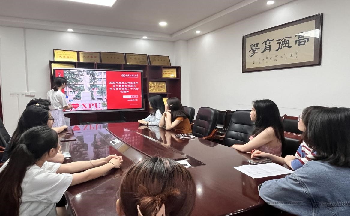 其次,由支部党员2020级国贸1班吴小菊同学介绍了党的二十大精神之高质量发展的科学内涵和2023年政府工作报告中关于教育的论述。大四学生党员郑小颖(已保研taptap188)、刘筱璇(已考研至陕西科技大学)、樊泽薇(已考研至浙江传媒学院)、吴沙(即将签约中)、郭诗汝(已签约迦达高级时装有限公司)、王凡(已签约上海凰艮服饰科技有限公司)、李美娜(已签约广东溢达纺织有限公司)等同学就如何促进大学生高质量发展,结合自身升学、工作、科研等方面依次展开分享。她们认为大学最重要的就是找准目标定位,心之所想,身之所向,要以坚持不懈的精神去备考和求职;要注重实习实践,注重英语口语的能力培养,抓住秋招和春招的求职黄金期,不断积累面试经验,完善简历内容,考公要充分了解相关信息,合理报考职位;哪怕经历失败挫折也不要灰心丧气,要相信每个人的花期是不同的。无论前路多么坎坷,始终相信未来是光明的。