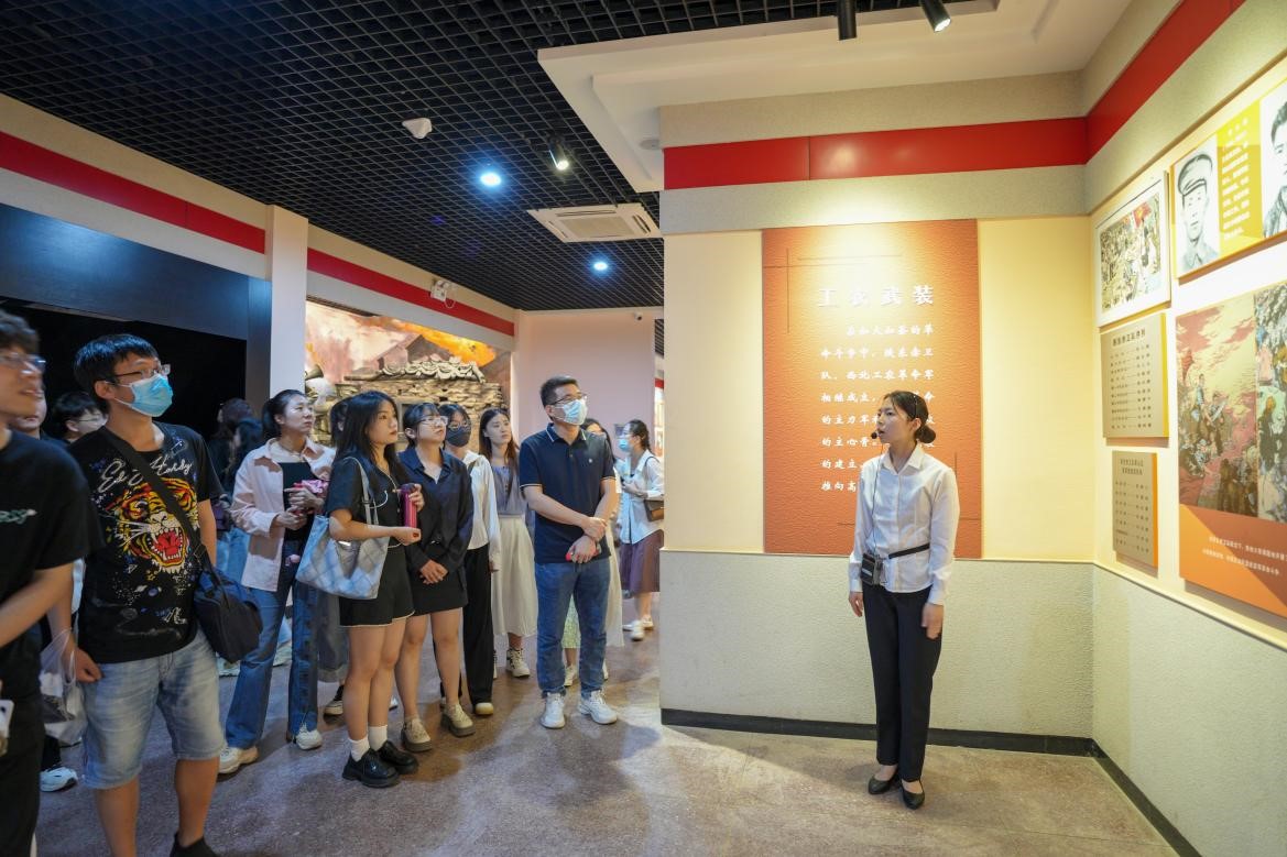在渭华起义指挥部旧址,凝视着一幅幅反映历史的珍贵照片、一个个年轻而鲜活的名字、青砖铺成的“同志们赶快踏着先烈的鲜血前进啊”的标语,全体成员深受震撼。